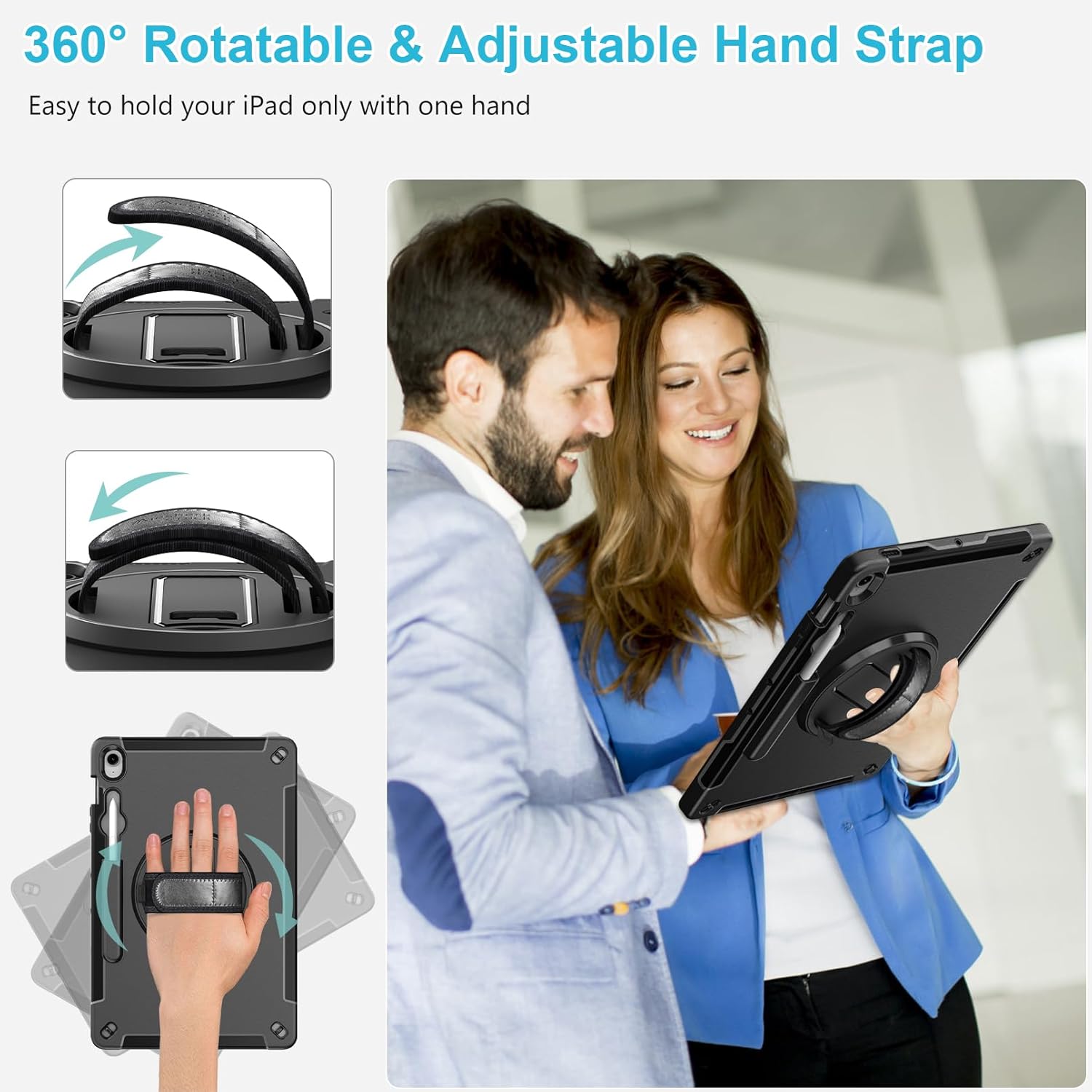 【Stable Rotatable Kickstand & Adjustable Hand Strap】 The 360° rotating foldable stand provides multiple angles, comfortable for viewing, typing, or drawing. Ergonomically adjustable hand strap supports more easily grip