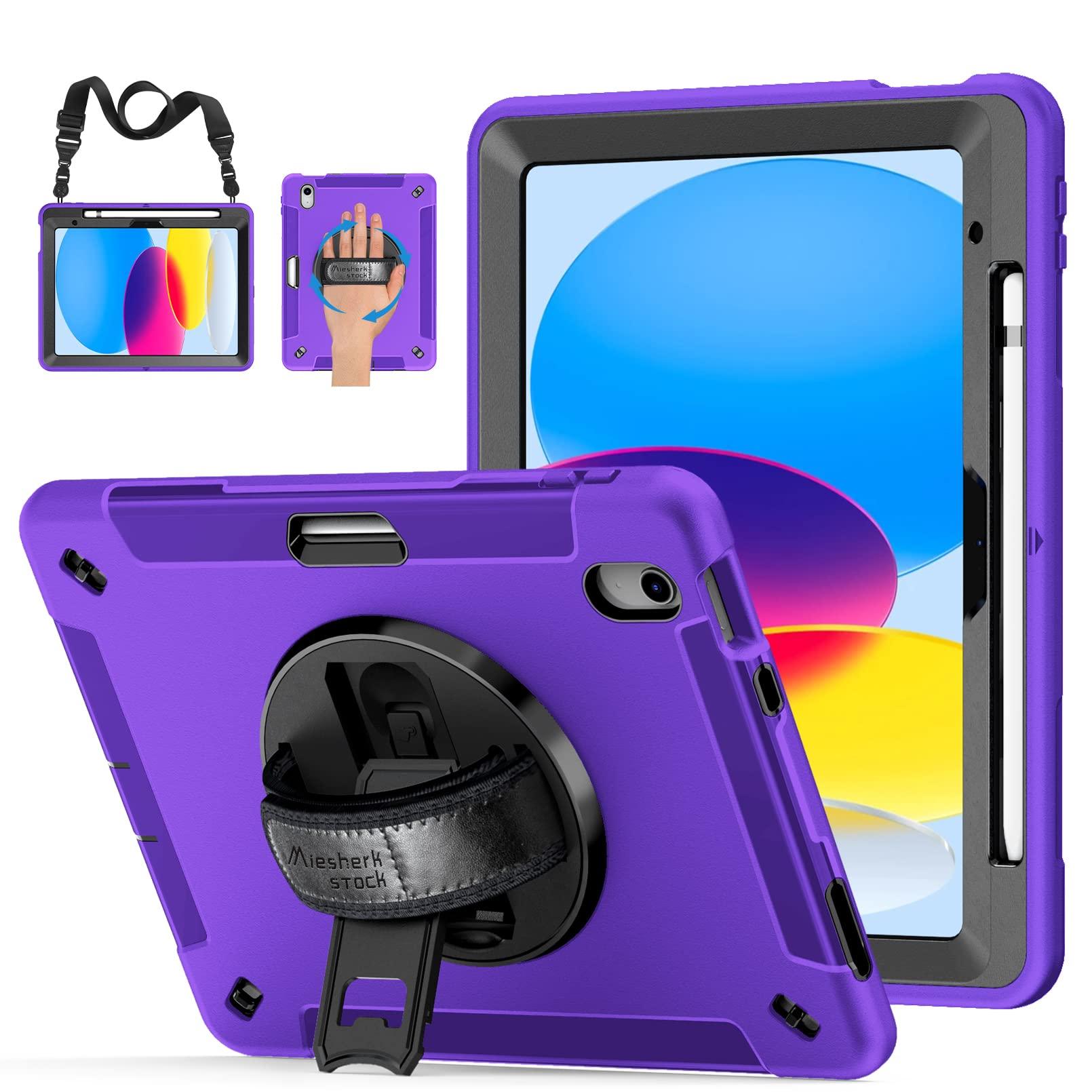 【Stable rotatable kickstand & adjustable handle】 Miesherk iPad 10th Case has 360° rotating foldable stand provides multiple angles(30°/45°/60°), nice to view, type, or draw. Ergonomically adjustable hand strap easier to hold, the matte coating prevents slipping out of your hand.