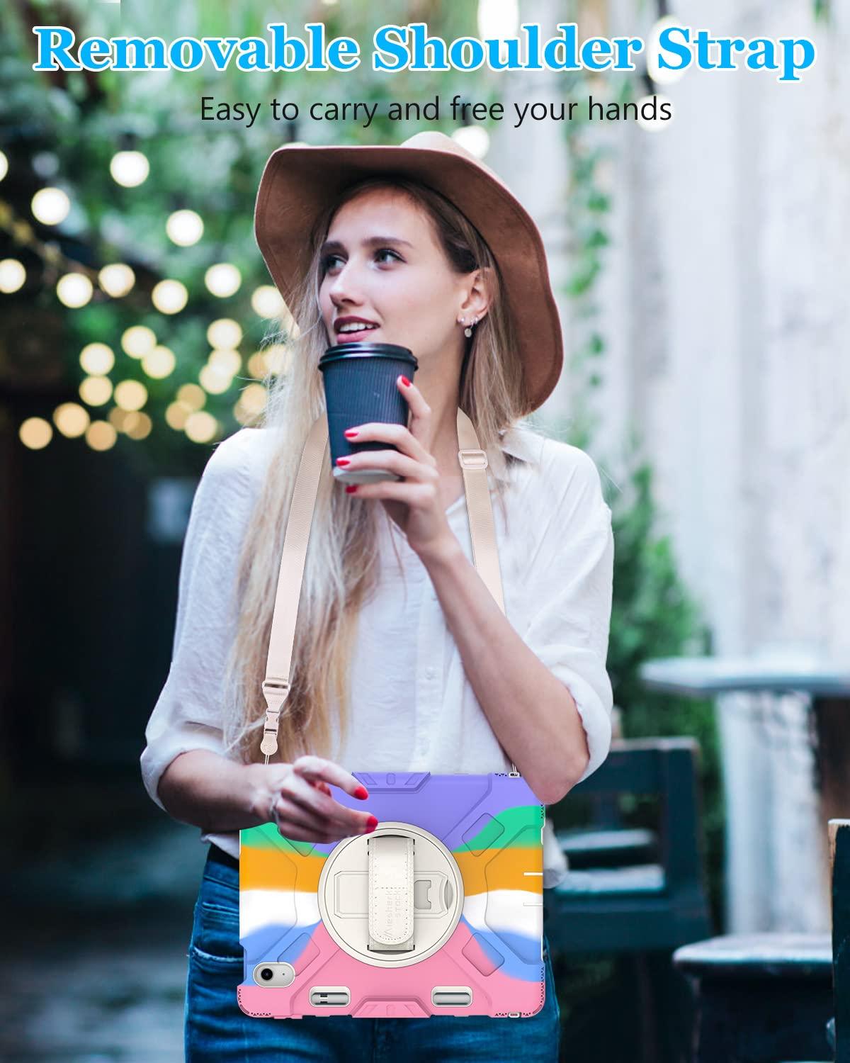 【Adjustable Hand Strap + Detachable Shoulder Strap】The adjustable hand strap offers comfortable holding. The detachable and adjustable shoulder strap can make your hands free during outdoor activities. That can also be used to attach your ipad to the car seat