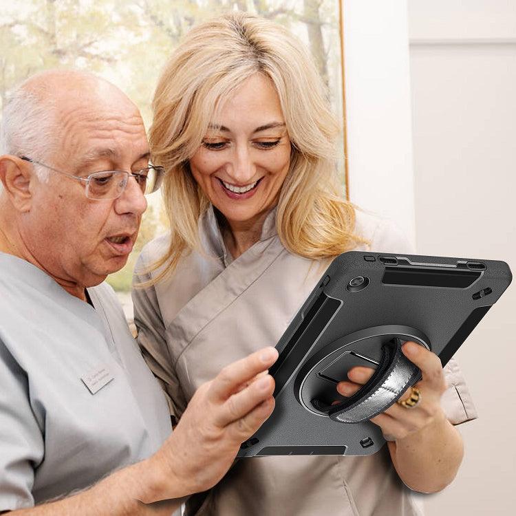 【360° Rotating Stand & Hand Strap】 Built-in 360 degree rotating kickstand and adjustable hand strap provides a more flexible and convenient way to use your tablet during work, study or journey, ideal for students, teachers, engineers, cashiers and waiters, etc.
