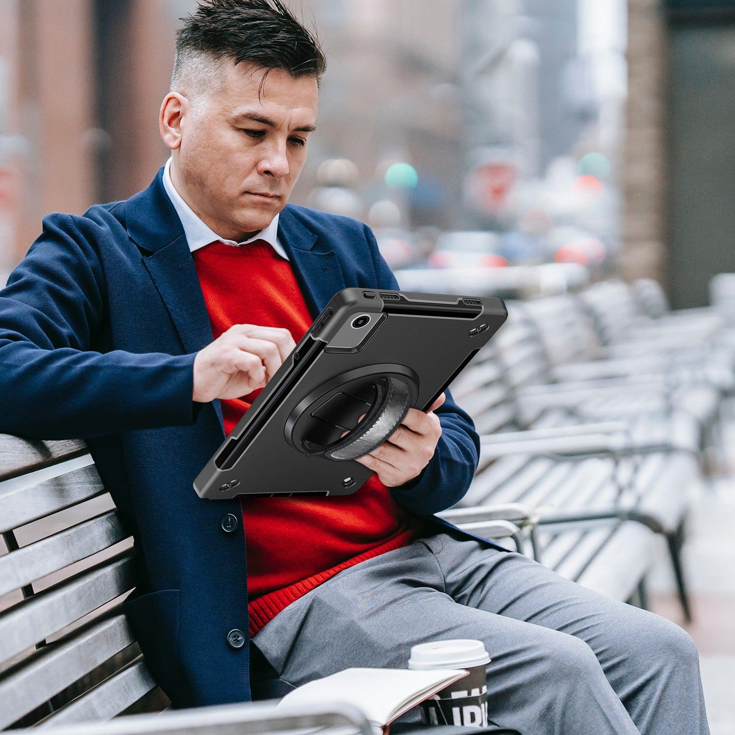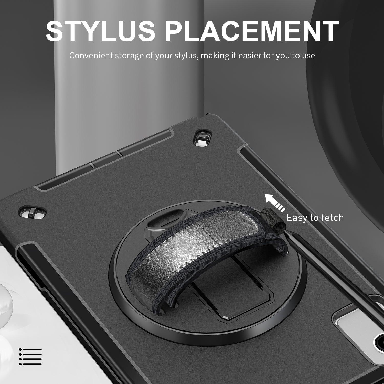 【360° Rotating Stand & Hand Strap】 Built-in 360 degree rotating kickstand and adjustable hand strap provides a more flexible and convenient way to use your tablet during work, study or journey, ideal for students, teachers, engineers, cashiers and waiters, etc.