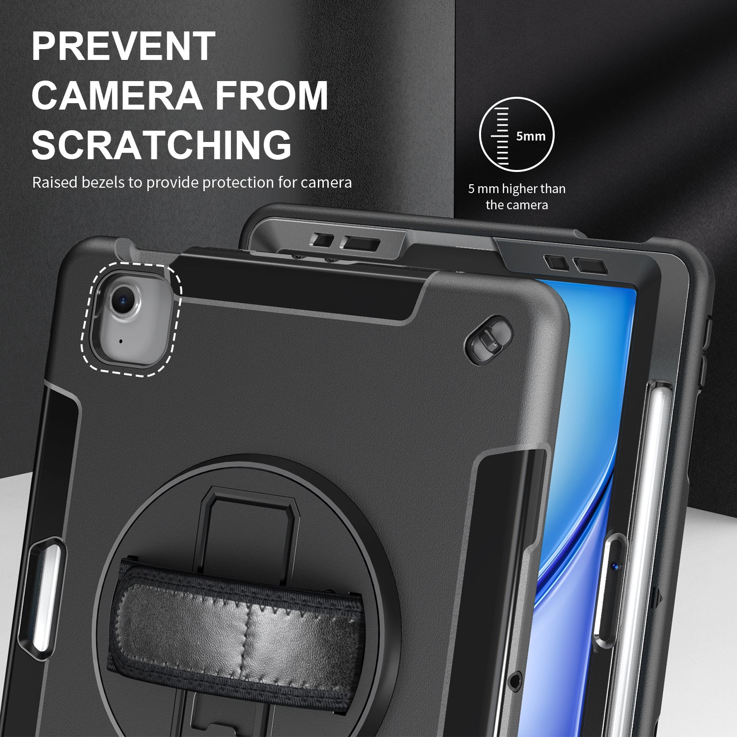 【Rotatable Kickstand & Adjustable Hand Strap】 The 360° rotating foldable stand provides multiple angles, comfortable for viewing, typing, or drawing. Ergonomically adjustable hand strap supports more easily holding