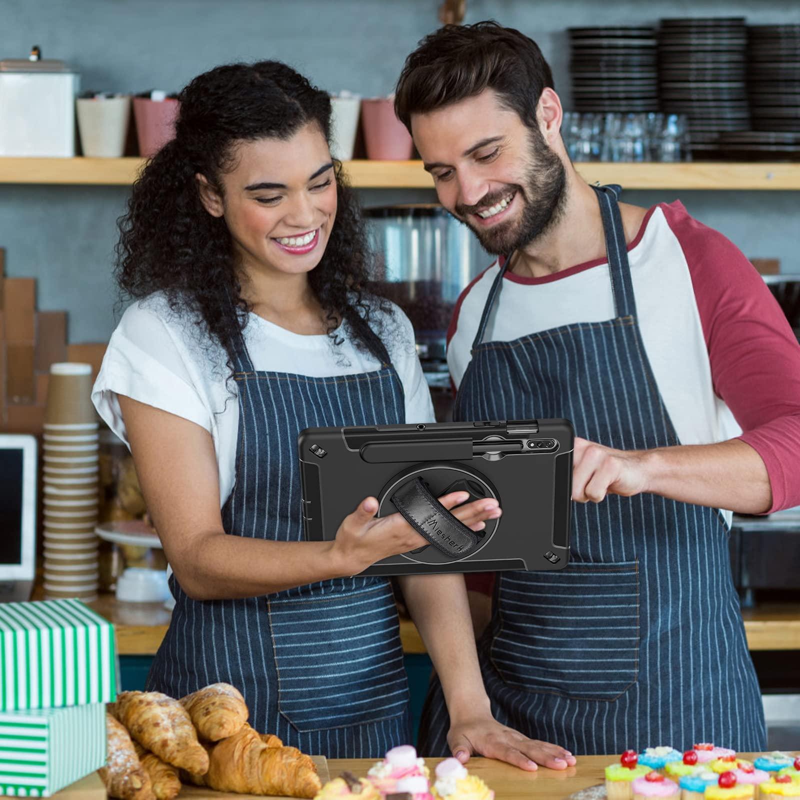 This Miesherk Galexy Tab S7/S8 Protective Cover is awesome. It provides the best drop protection, has an integrated rotating stand for no-hands viewing, plus a flexible strap to easily and firmly grab and carry your tablet. I highly highly recommend.